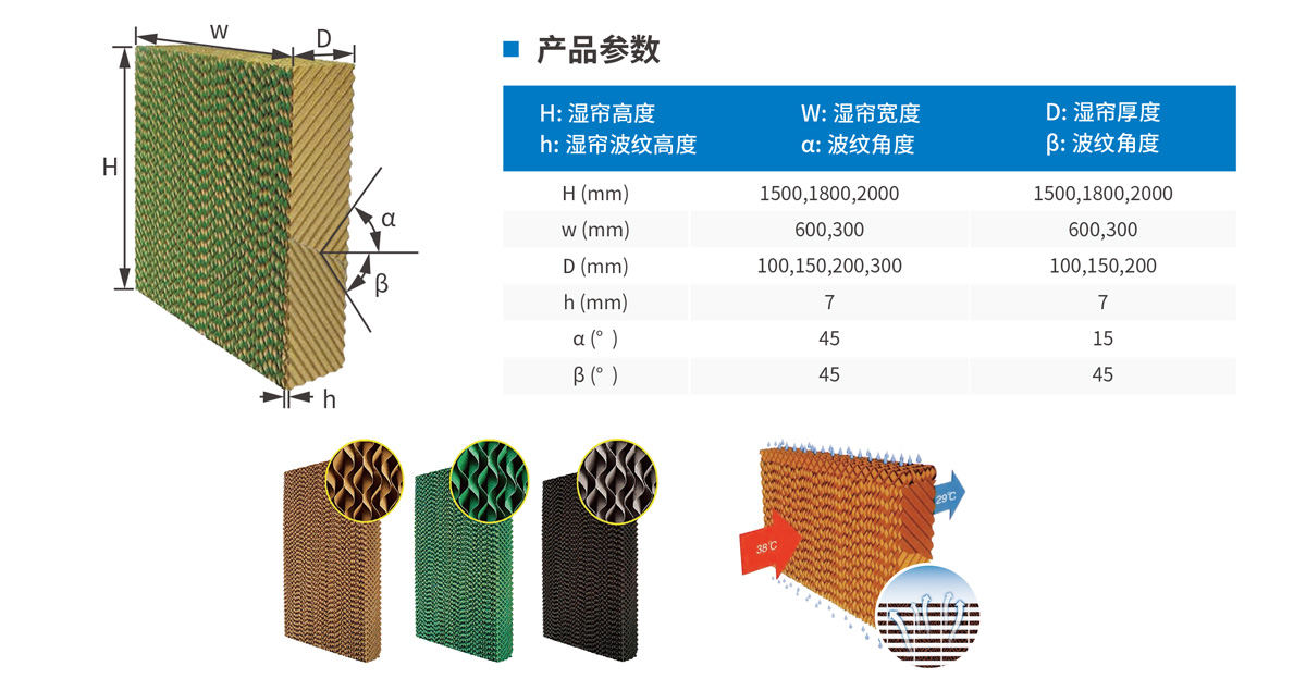 在自然界水份蒸發(fā)會(huì)降低溫度;濕簾在波紋狀的纖維紙表面有層薄薄的水膜,當(dāng)室外干熱空氣被風(fēng)機(jī)吸抽穿過(guò)紙墊時(shí),水膜上的水會(huì)吸收空氣中的熱量進(jìn)而蒸發(fā)成為水蒸汽,這樣經(jīng)過(guò)處理后的涼爽濕潤(rùn)的空氣就進(jìn)入室內(nèi)了.濕簾降溫原理正是利用了風(fēng)機(jī)與濕簾的有效組合人為再現(xiàn)了自然界水份蒸發(fā)降溫這一物理現(xiàn)象達(dá)到降溫目的。